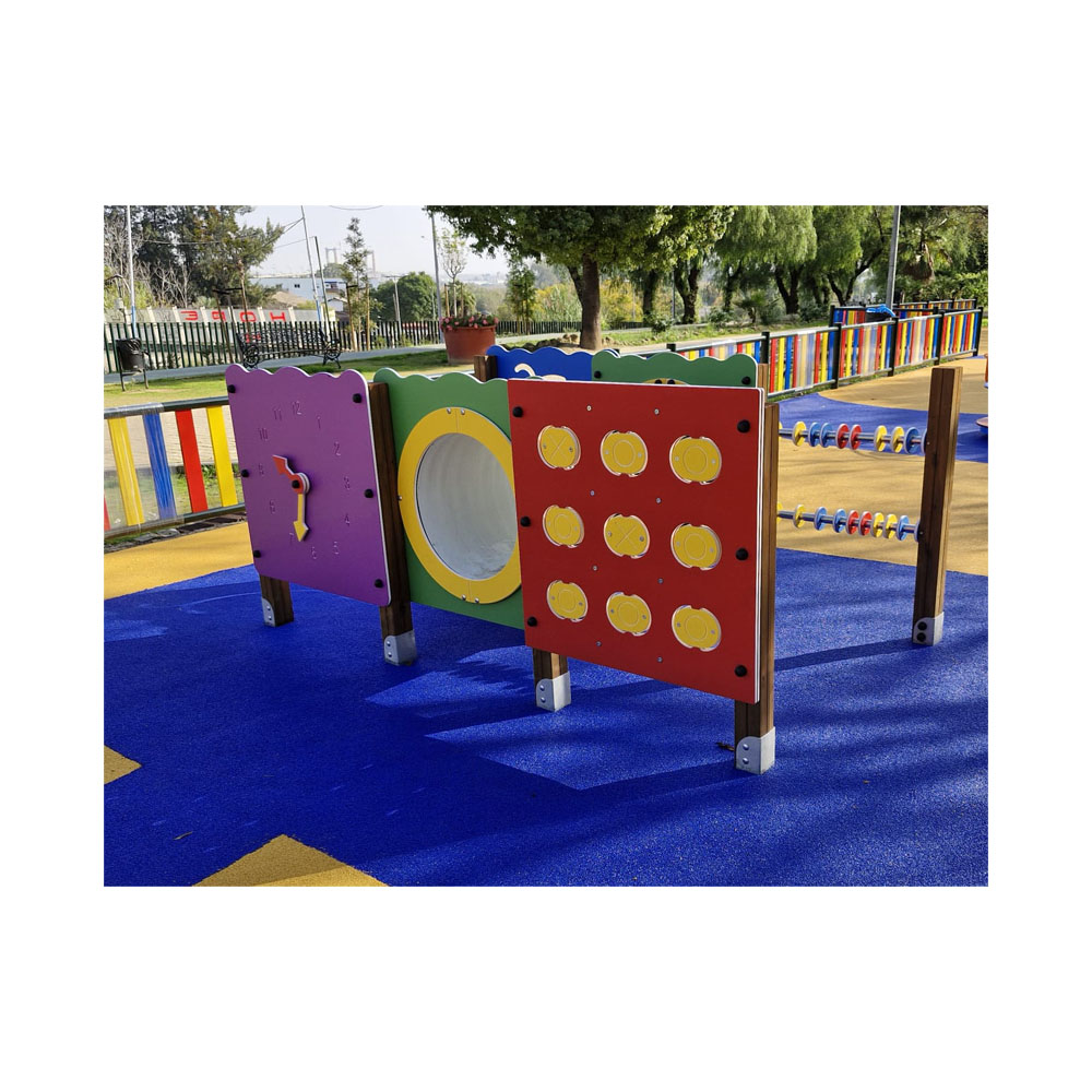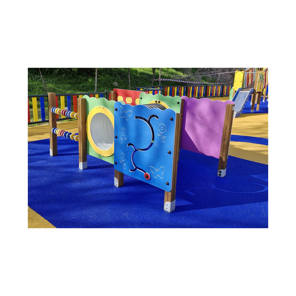 Está compuesto por 4 paneles lúdicos: 3 en raya, ábaco, laberinto y reloj. Del mismo modo, dispone de un túnel cerrado para gatear.